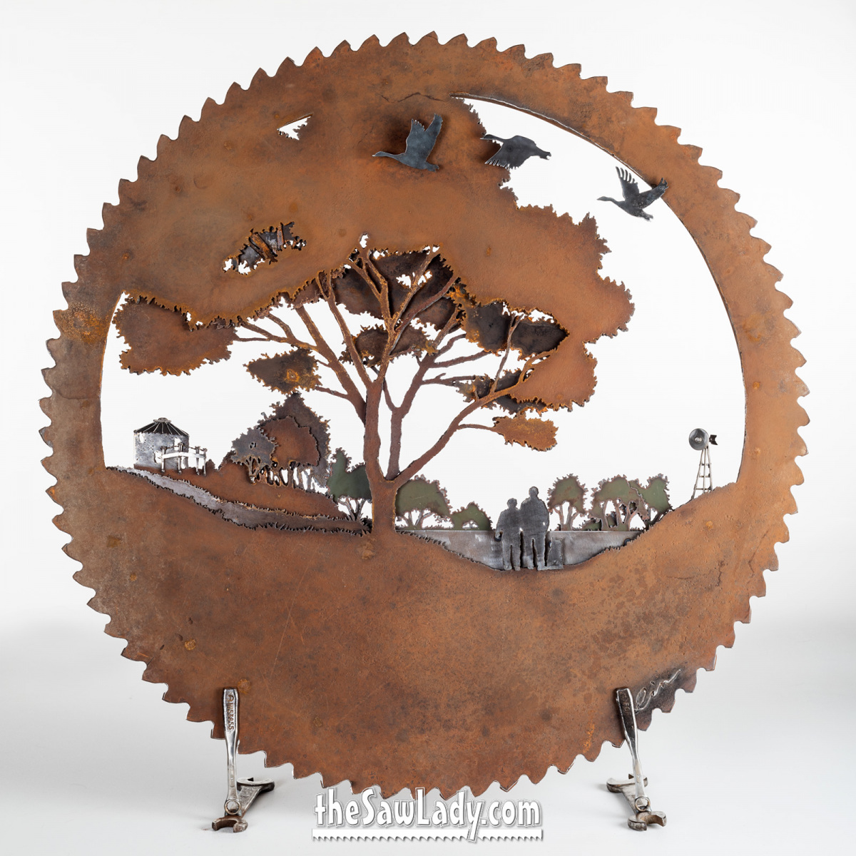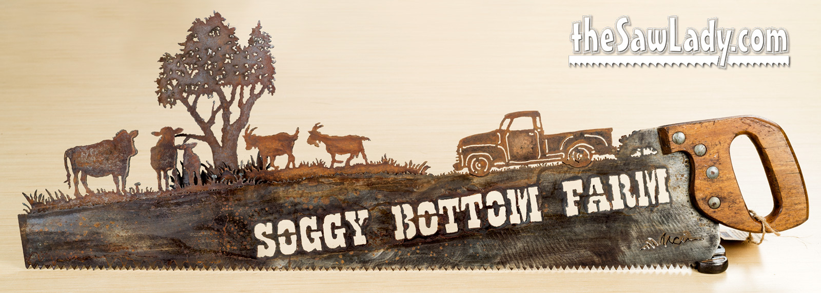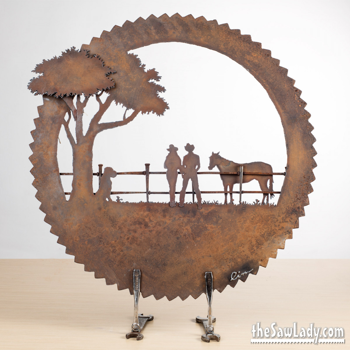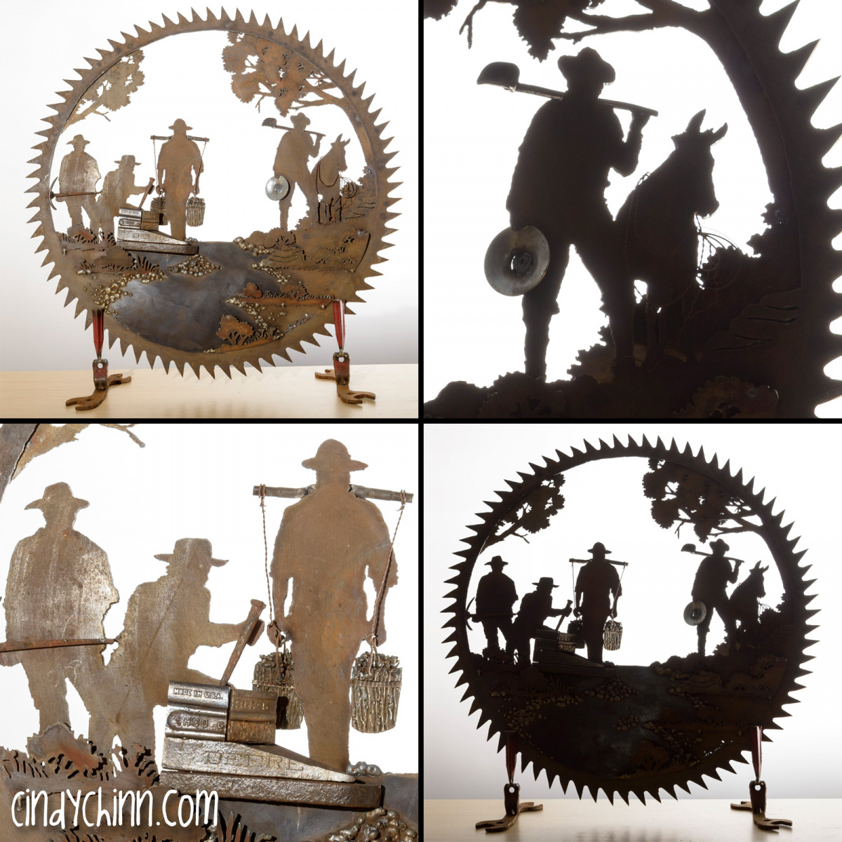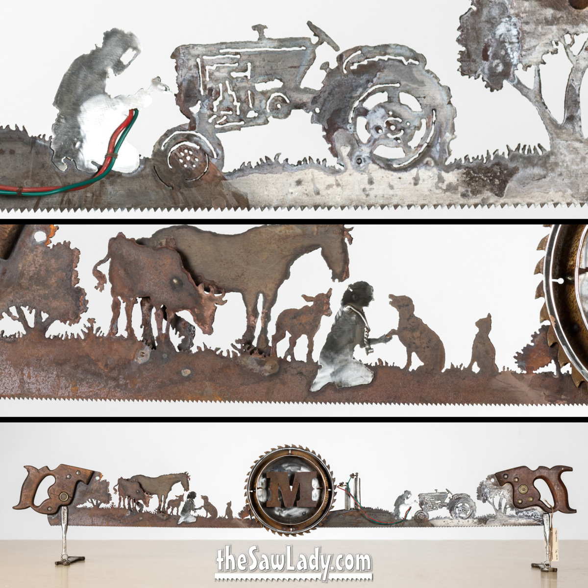 “What types of designs can you create?” – Designs are limited only by our imaginations! I can make anything from a fun fishing saw to a life-size peacock! Here’s a look at some of my “Barnyard Portraits” (animal metal sculptures)