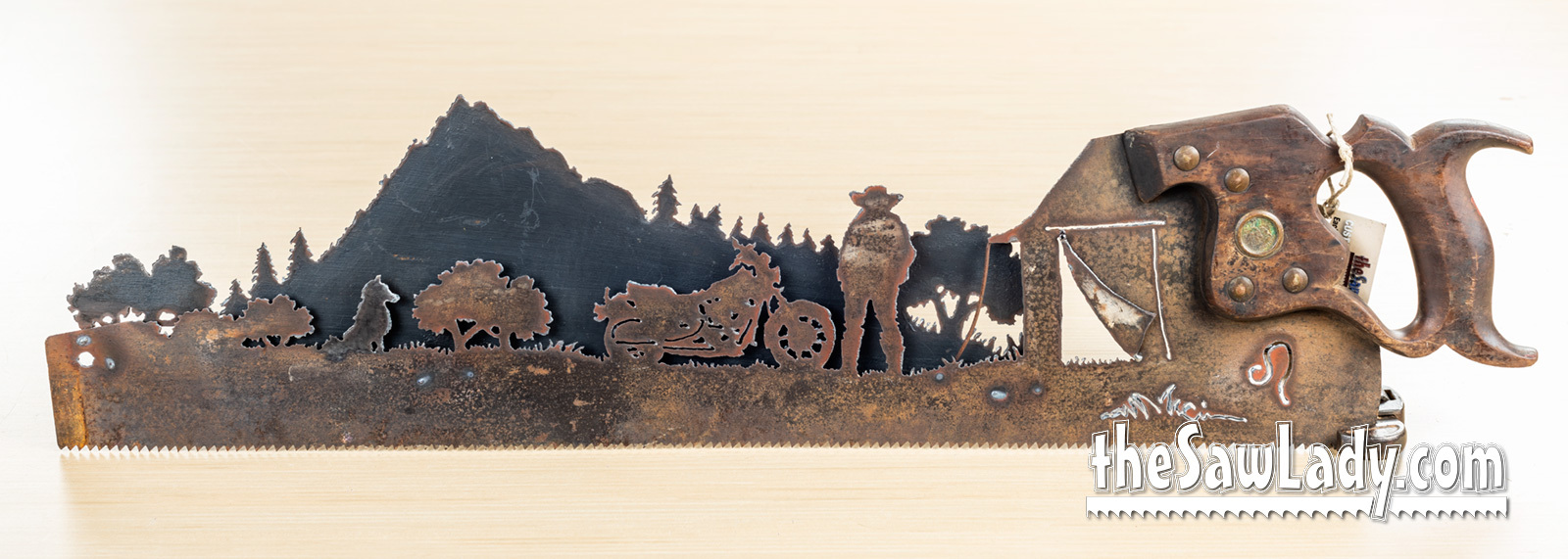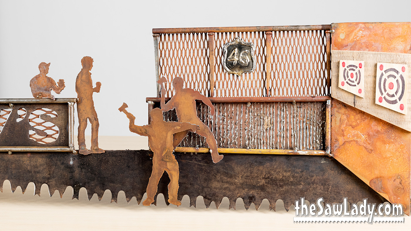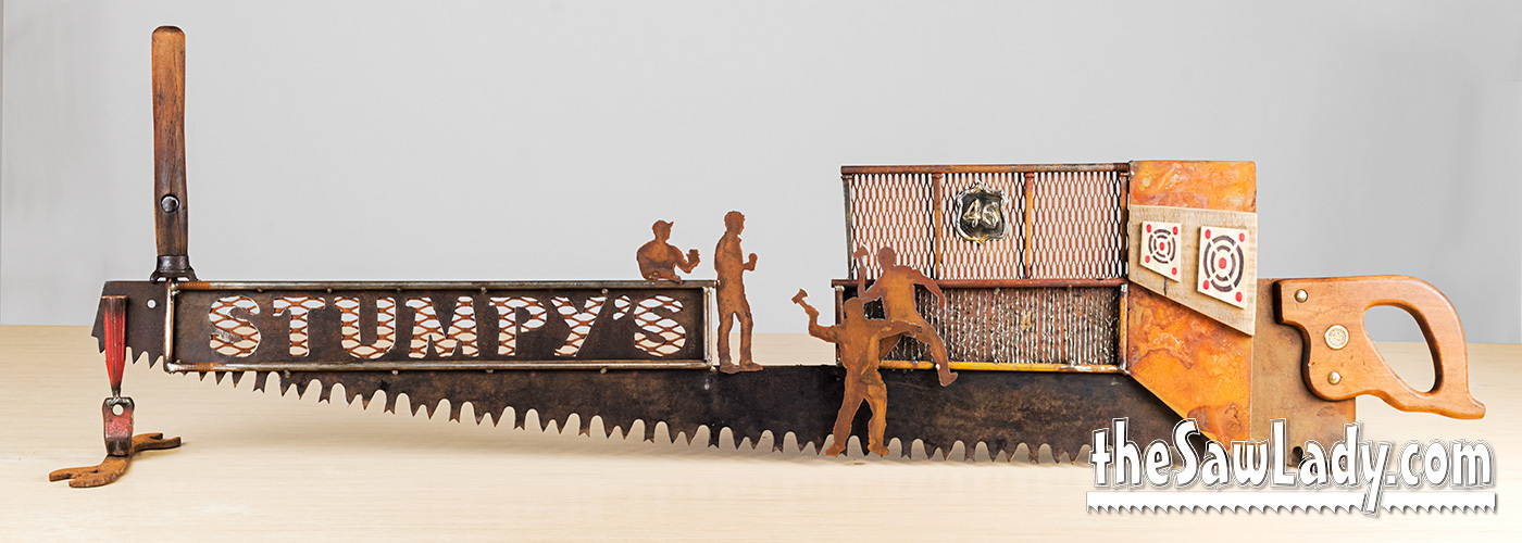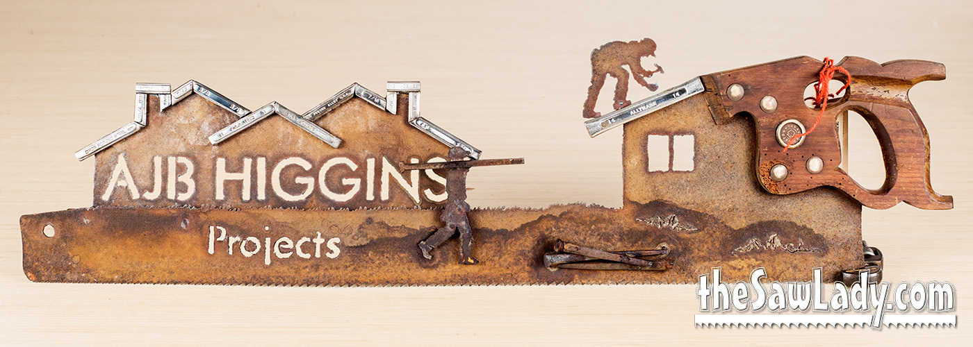MORE ABOUT PRICING: A basic handsaw with a custom silhouette design will run you about $300. If you want something more complex, or with more detail the price will go up based on how much time it will take me. I also make a lot of custom ‘2 man’ saws, and these start at $550. If you look at the images below, you’ll see some “Built 3D” objects like heavy equipment and you can add these ($350 each addition).