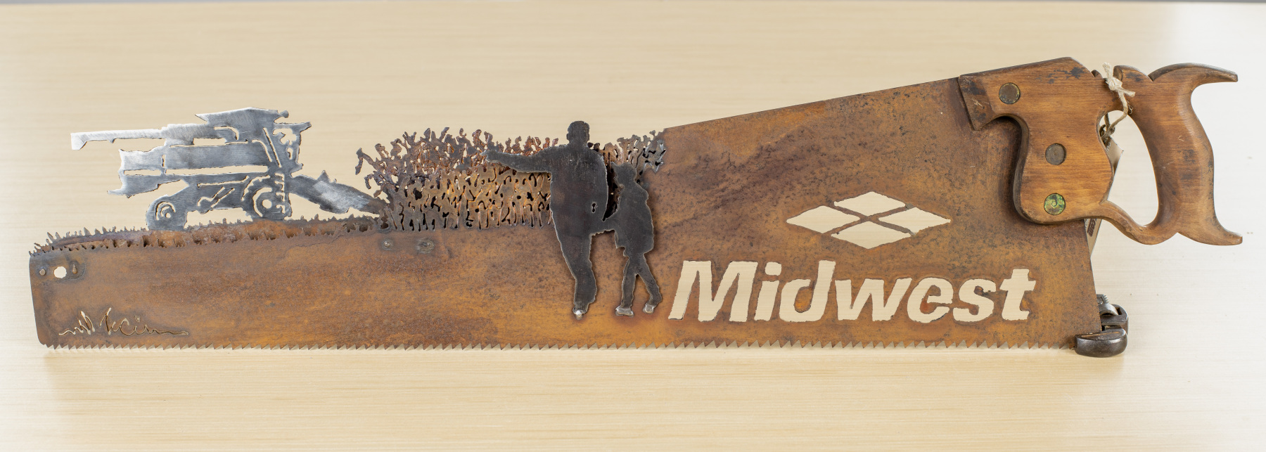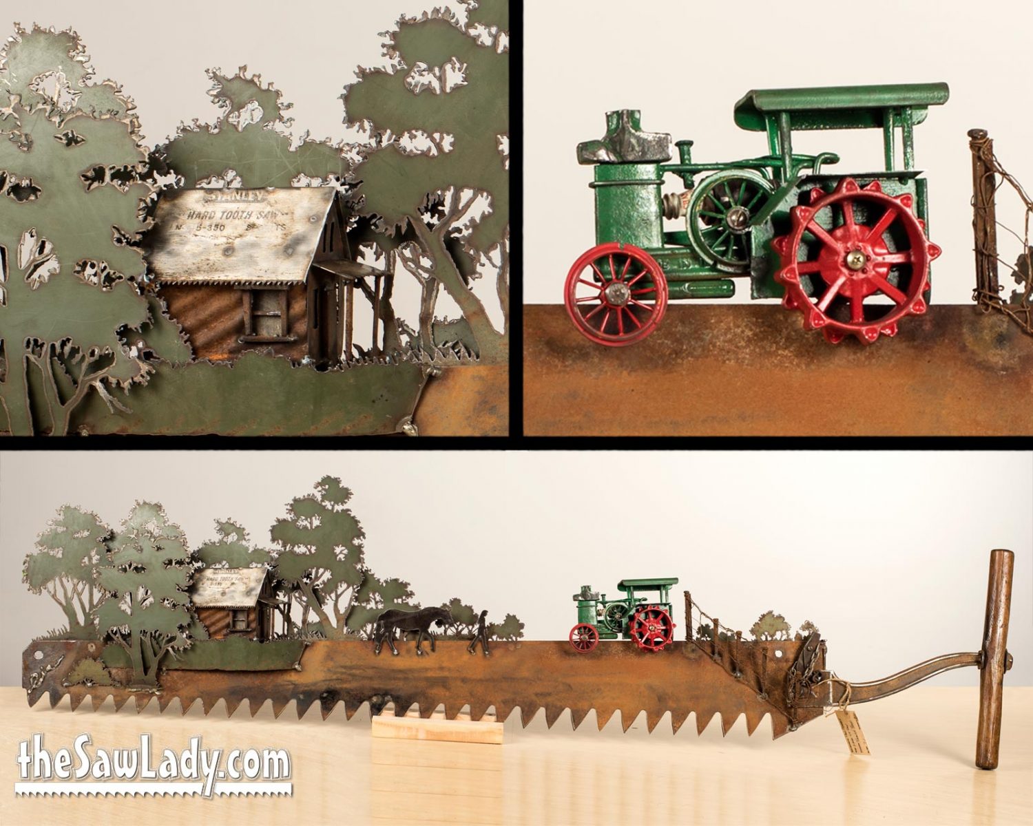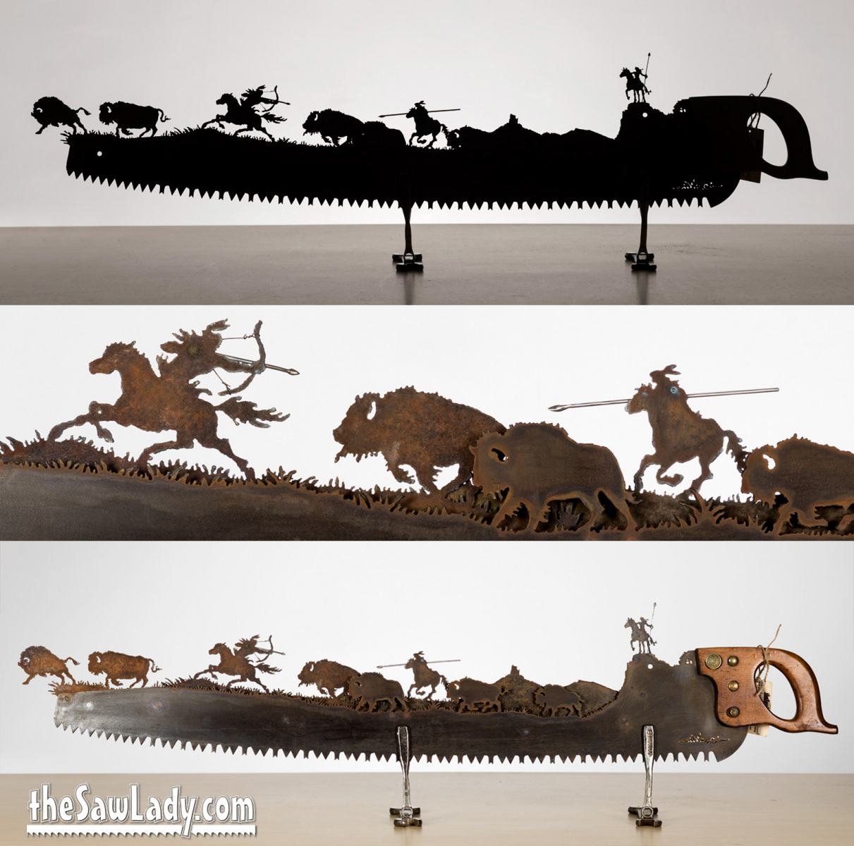 MORE ABOUT PRICING: A basic handsaw with a custom silhouette design will run you about $300. If you want something more complex, or with more detail the price will go up based on how much time it will take me. I also make a lot of custom ‘2 man’ saws, and these start at $550. If you look at the images below, you’ll see some “Built 3D” objects like heavy equipment and you can add these ($350 each addition).