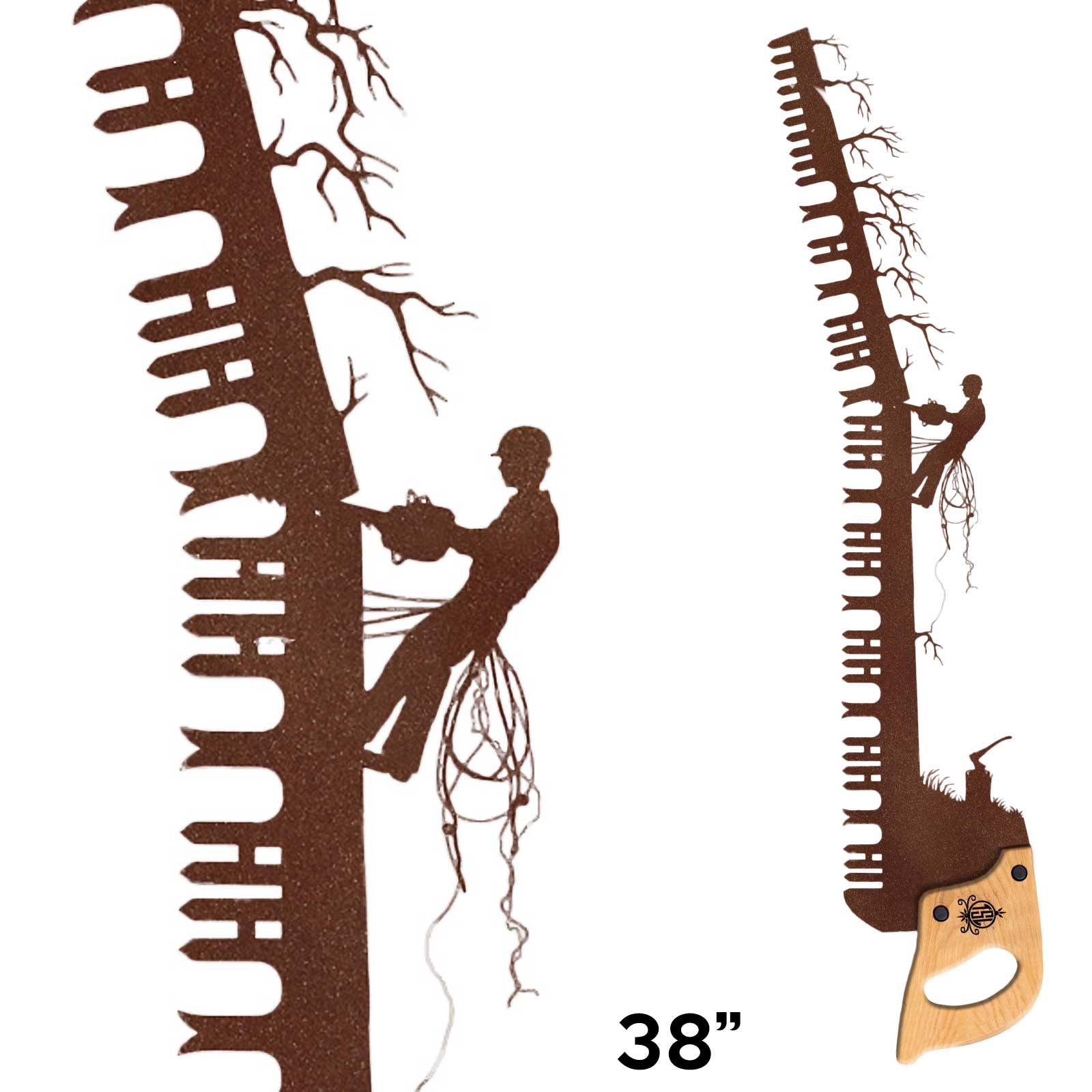 38″ Tree Topper Logger & Arborist Saw Art – Large Metal Wall Art Gift
