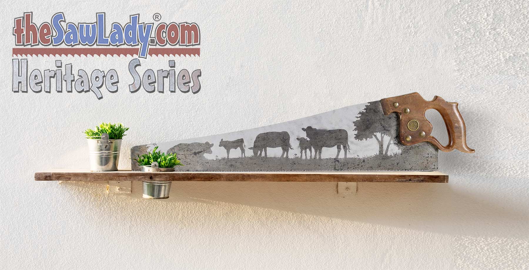 This collection bridges the gap between my fully hand-cut Vintage Series and my modern Contemporary Series. The Heritage Series offers real old tools paired with classic etched designs at an accessible price — perfect for art lovers, gift buyers, and anyone who wants a piece of rustic history on their wall. – LEARN MORE about my 3 series of Saw Art