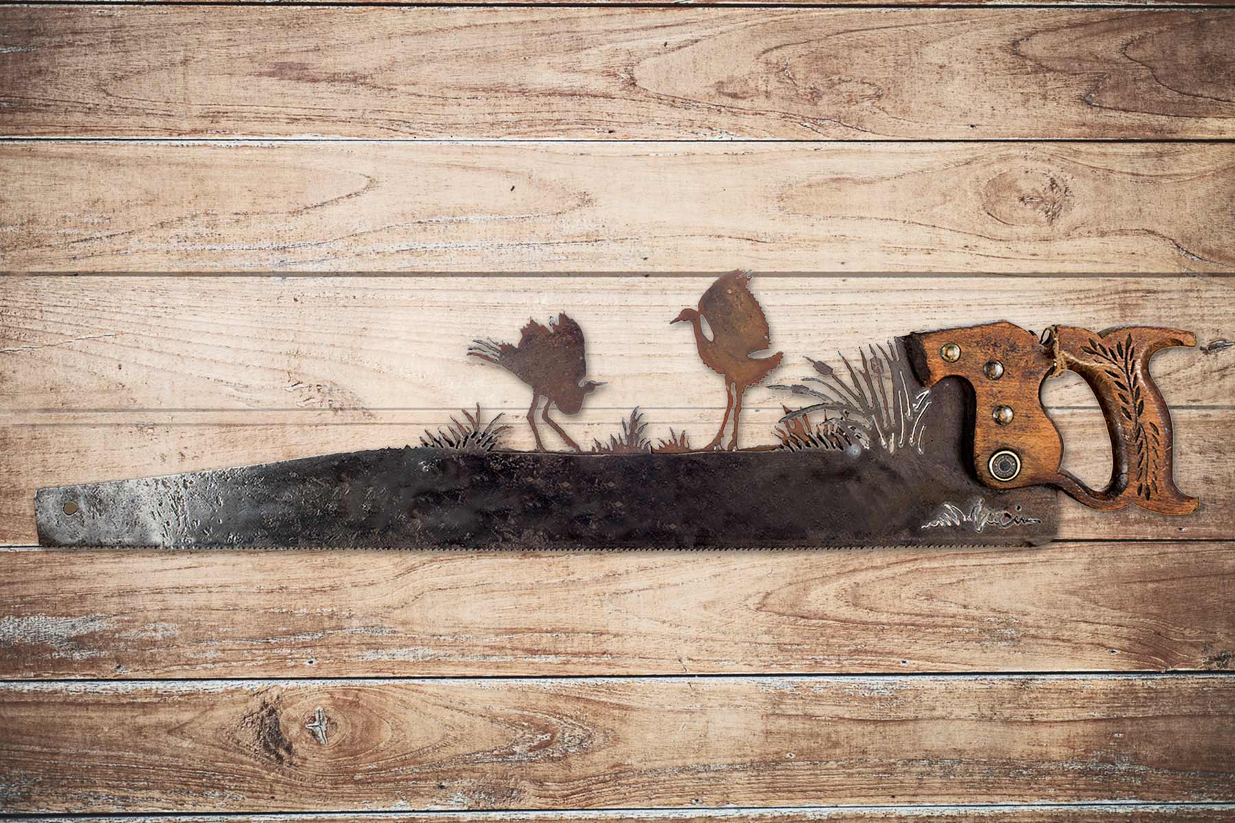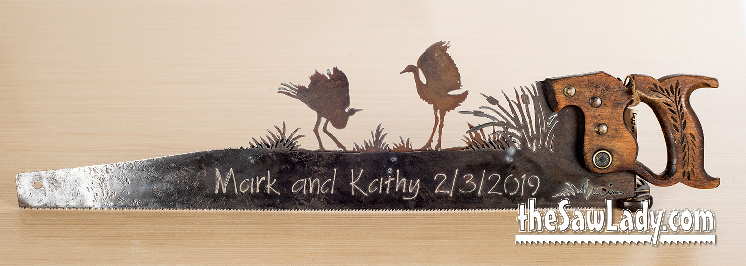 This handsaw featuring 2 Dancing Cranes is a great, unique gift for friend or yourself! Perfect metal art gift for the nature lover in your life!